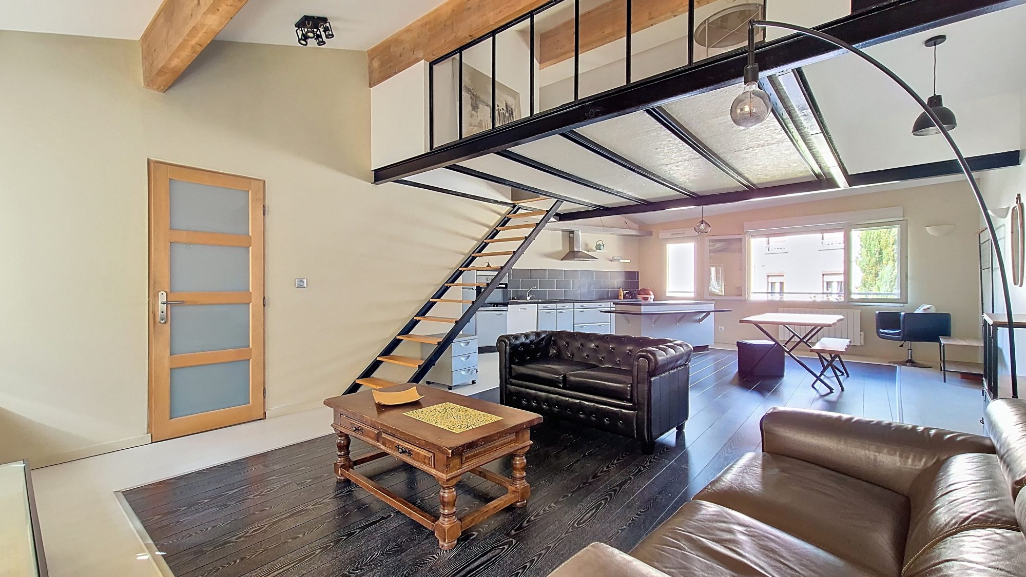 PIETRAPOLIS IMMOBILIER Vienne vous propose en exclusivité cet appartement type loft T2 de 79 m² ( 58m² loi carrez ) traversant situé au calme en hyper-centre de Vienne.