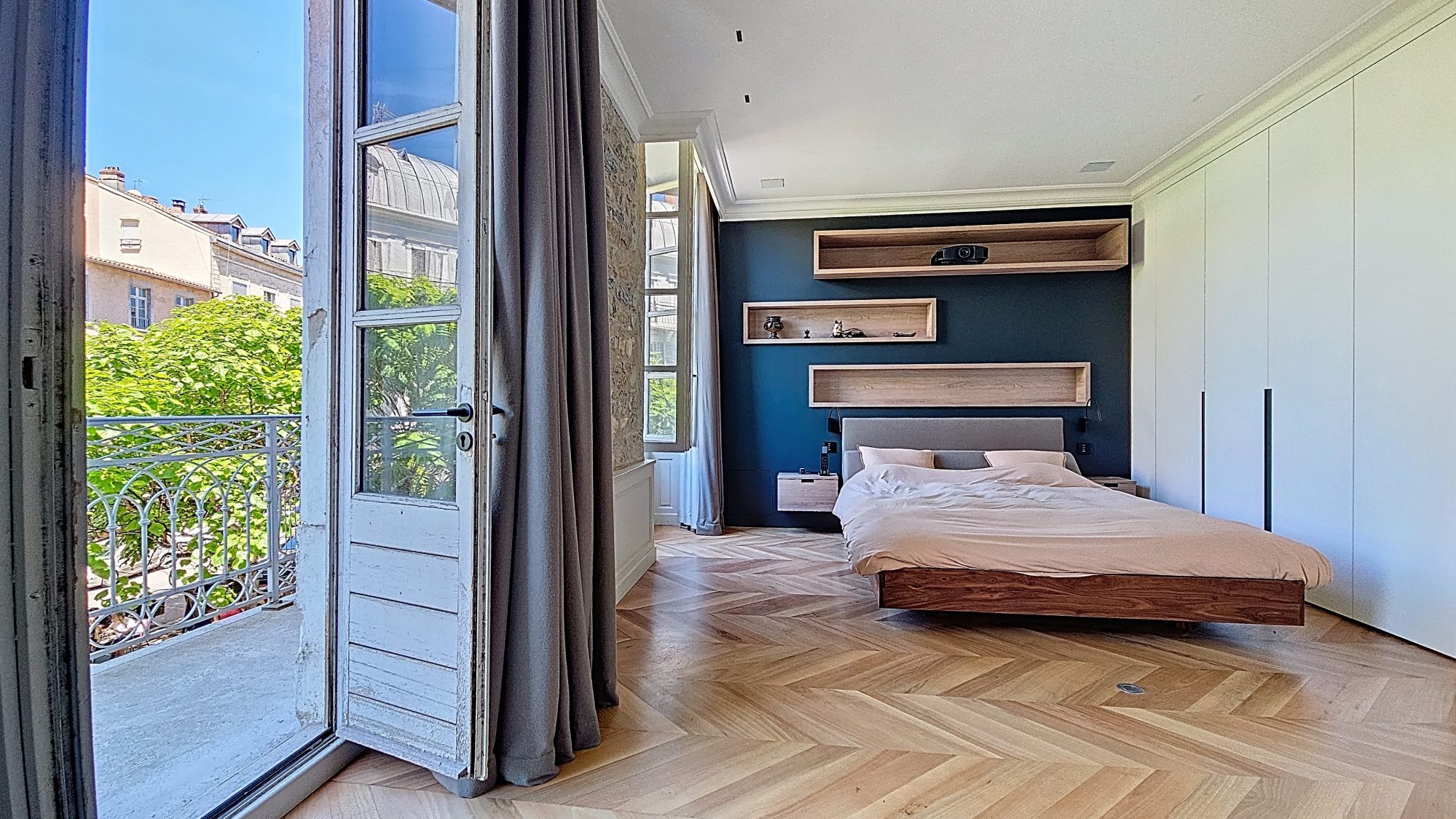 PIETRAPOLIS IMMOBILIER vous propose au cœur de VIENNE, en premier étage (de 4), cet appartement coup-de-cœur, entièrement rénové en 2020, T3, standing, de 89m2 comprenant salon, 2 chambres, balcon. Situé à 2 mn de la gare, au pied des commerces et de toutes commodités, il allie le charme du bâti ancien (Pierres, staff, parquets massifs, hauteur sous plafond de 3m) et d'une modernité que l'on retrouve dans chaque pièces (Climatisation réversible, domotique générale, gestion éclairage, rideaux, son, tv)