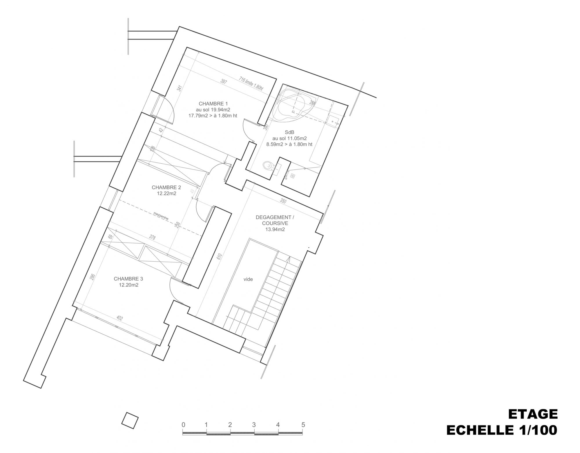 - Salle de bains (Ch 1): 11.05 m²