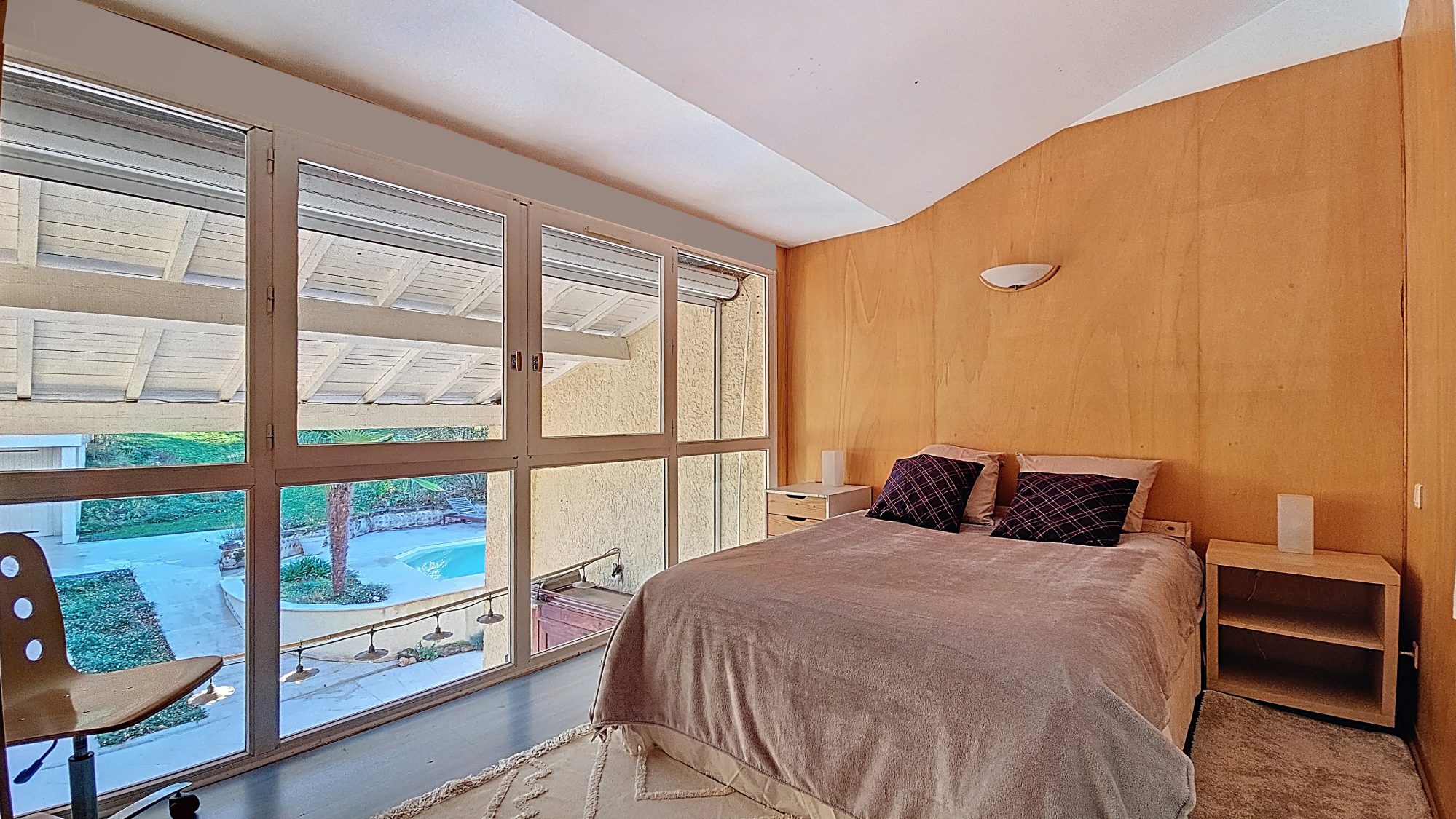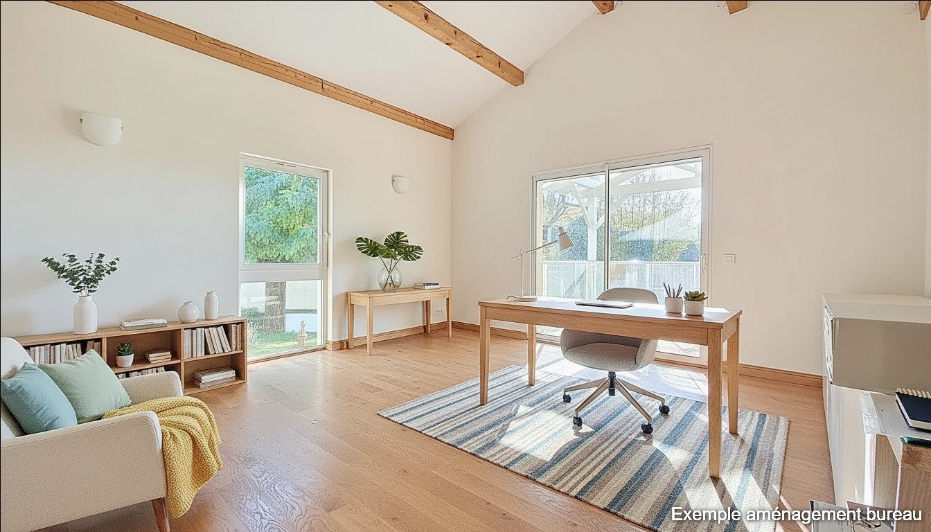 - Un bureau (plafond cathédrale) ouvrant sur terrasse couverte